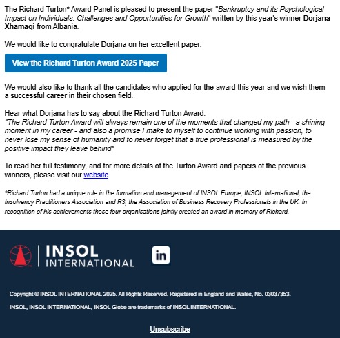 Richard Turton Award / Insol international, Lajme, News / By akf_admin Kliko këtu për të parë më shumë.